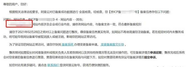 以下是阿里云發(fā)來的新一輪備案整改通知原文: